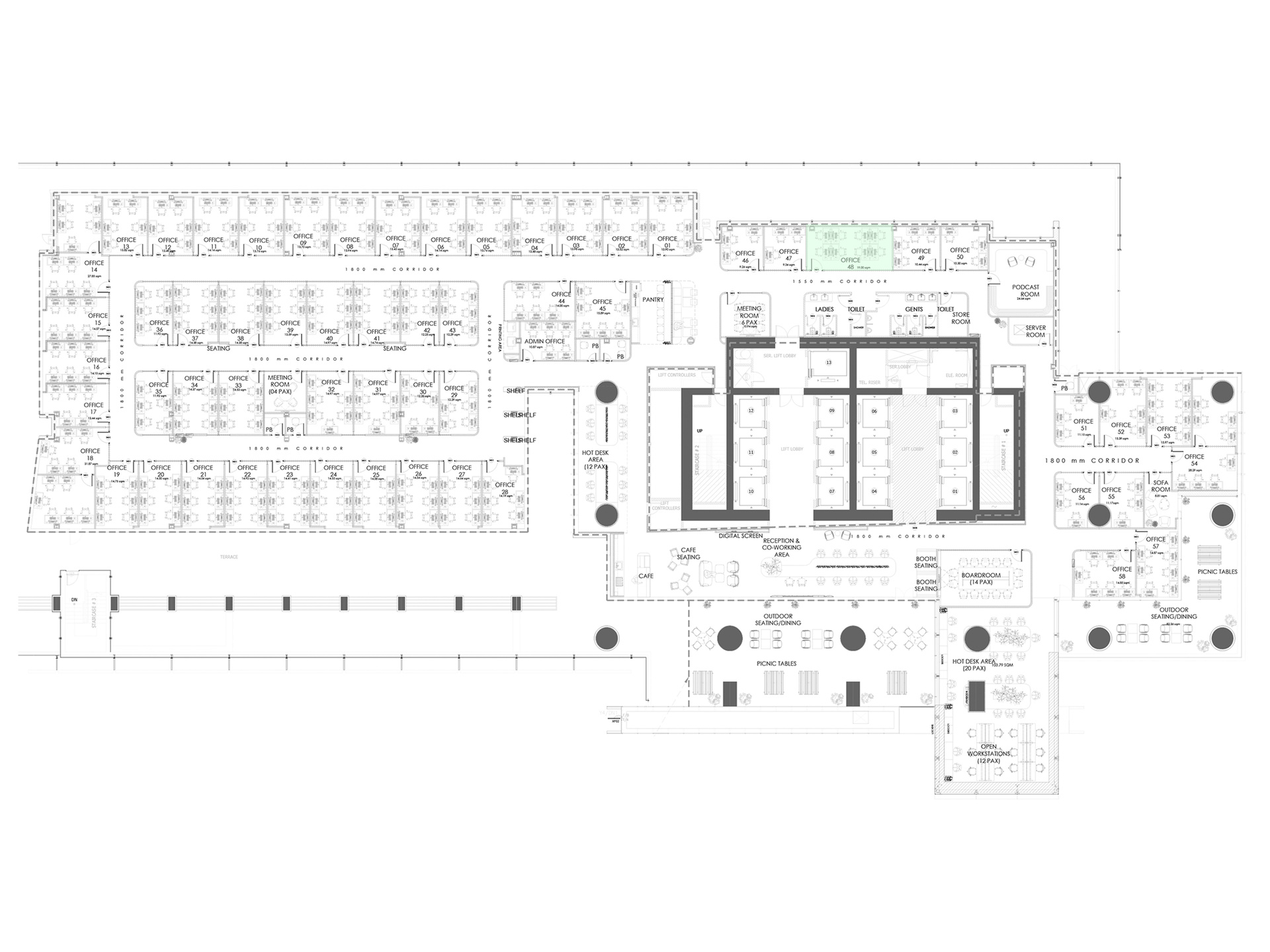 Flowork occupies 50,667 sq. ft of thoughtfully designed workspace, accommodating up to 306 workstations. The offices are fully furnished and ready for immediate occupancy, offering a seamless move-in experience for growing teams, regional headquarters, and international firms entering the Dubai market.